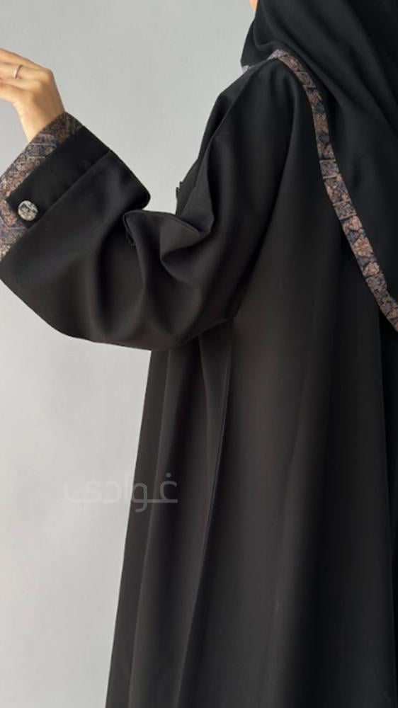 تأتي مع العباية طرحة سوداء بطرف لينن منقش مجاناً