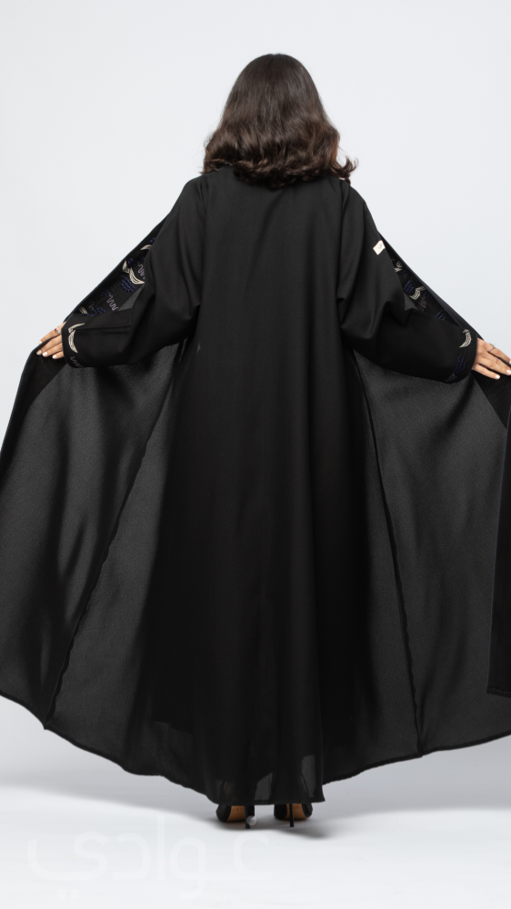 يعكس اللون الأسود الكلاسيكي التقليدي أناقة تلائم جميع المناسبات، وتضيف الأكمام الواسعة لمسة من الرقي والأنوثة، مما يجعلها خيارًا مثاليًا للمحافل الرسمية والأوقات الخاصة.
